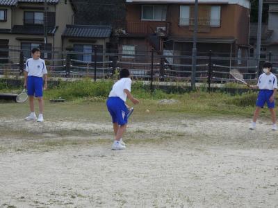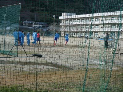 サッカーは、少々地面が荒れて滑るような状況でも、試合はありますから、こんな日の練習こそ大事。顧問が入れるボールをダイレクトに蹴る練習を繰り返していました。今週末、県大会を控えている野球部は、9人全員が内野に入りシートノック。人数が少ないからこそ、全員が内外野を守れるように鍛えています。